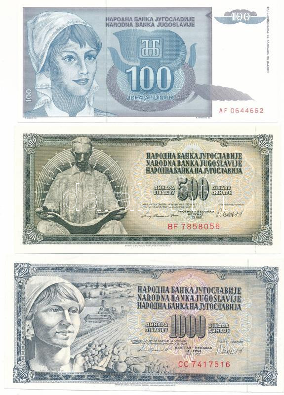 Jugoslavia 1992. 100 Dinara + 1981. 500 Dinara + 1000 Dinara C:AU-XF