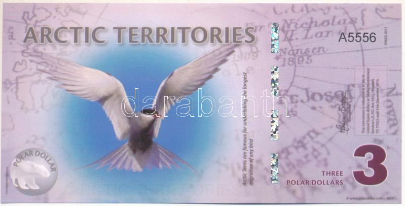 https://www.darabanth.com/en/498-Online-auction/498.0/Numismatics/Worldwide-banknotes~1000103/Sarkvideki-teruletek-2012-3USD-fantazia-bankjegy-A5556-TUNC3Cbr-3E-Arctic-Territories-2012-3-P~II3402422