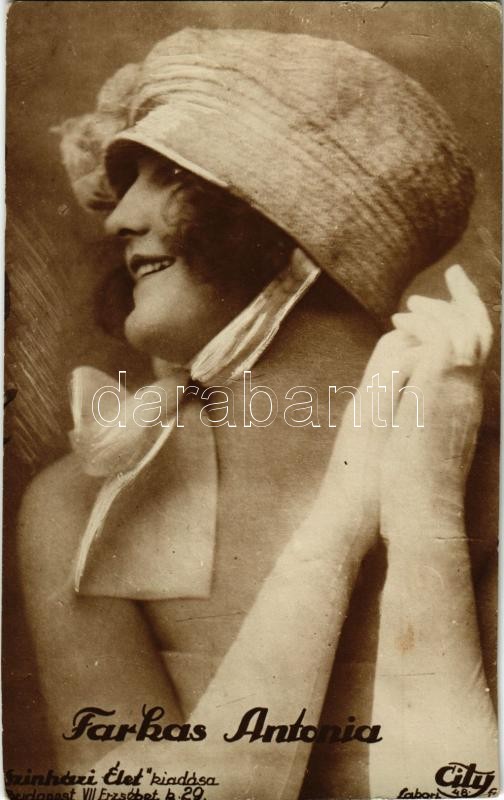 Farkas Antónia. Színházi Élet kiadása. Budapest VII. Erzsébet körút 29. City Labor fotográfia 48. (Rb)