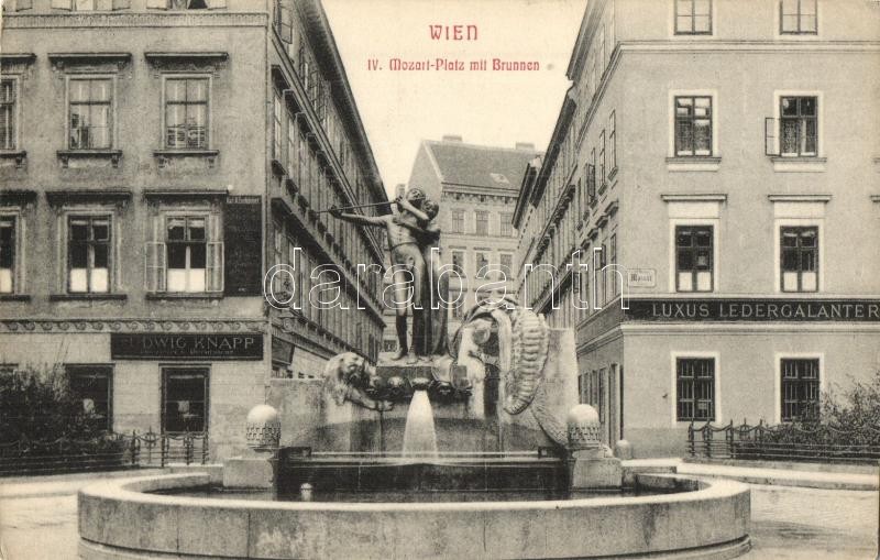 Vienna, Wien IV. Mozart Platz mit Brunnen, Ludwig Knapp, Luxus Lederga...