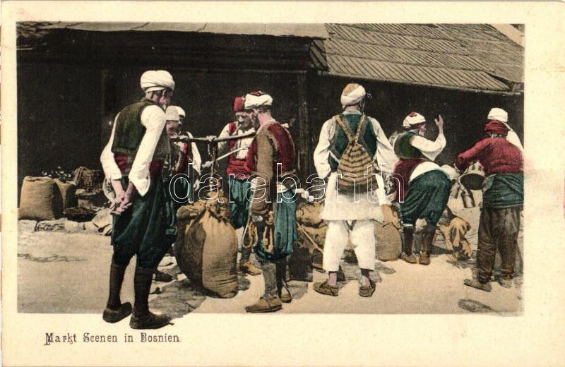 Markt Scenen in Bosnien / Bosnian folklore, market place, merchants