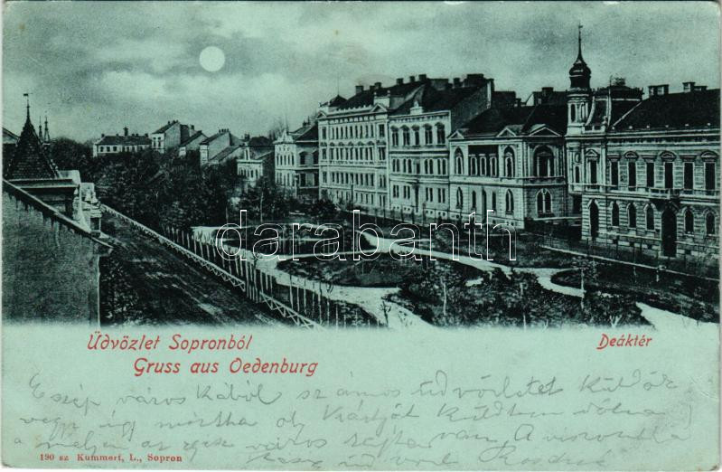 1903 Sopron, Deák tér este holdfényben. Kummert L. kiadása (EK)