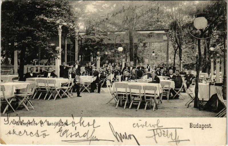 1904 Budapest XIV. Városliget, Wampetics F. vendéglője, kert pincérekkel