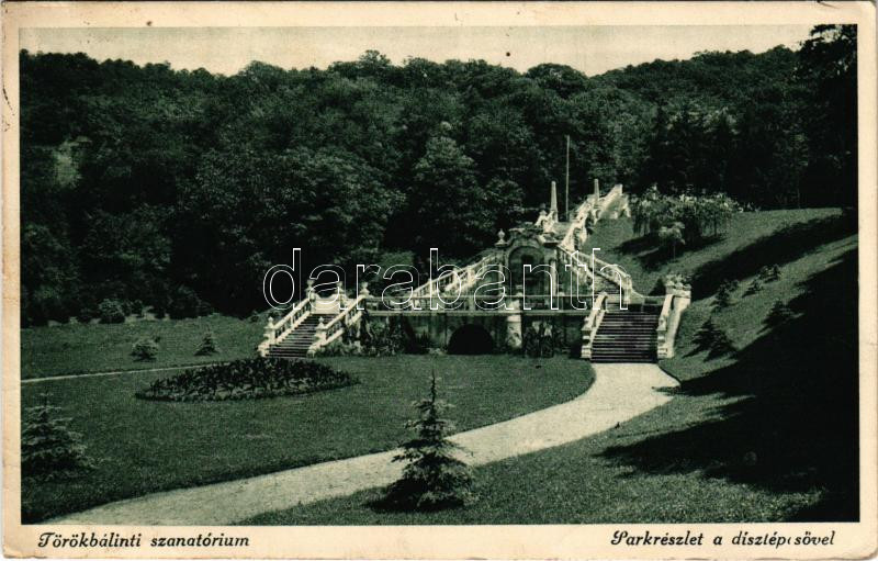 1937 Törökbálint, szanatórium, park részlet a díszlépcsővel (gyűrődése...