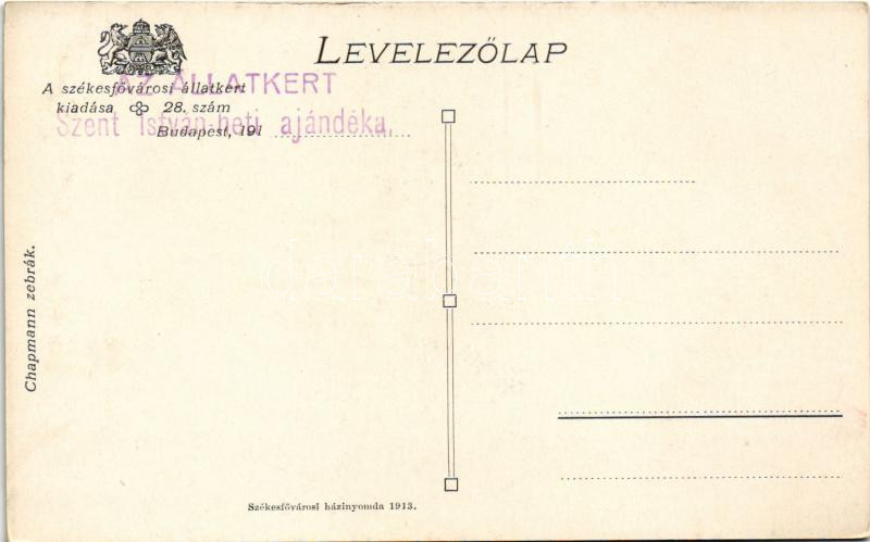 Budapest XIV. Állatkert, Chapmann zebrák. A székesfővárosi állatkert kiadása 28. sz.