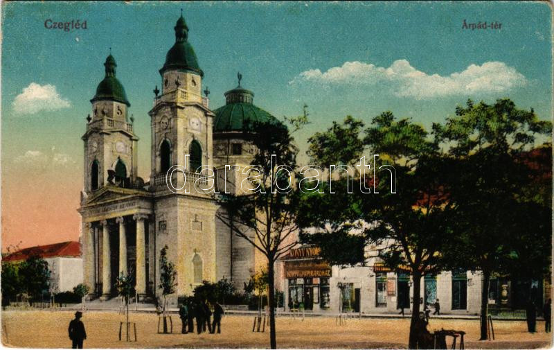 Cegléd, Árpád tér, könyvnyomda, papíráruház. Vasúti levelezőlapárusítá...