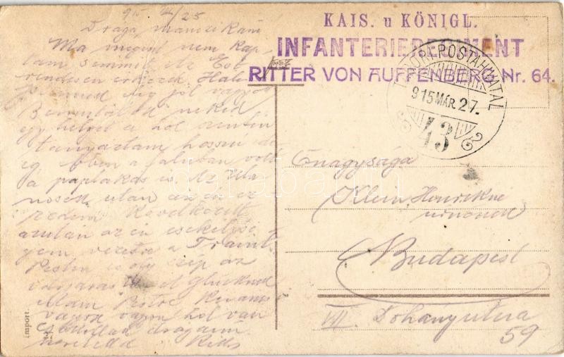 1915 Österr.-ung. Kavallerie verfolgt russische Kosaken / WWI Austro-Hungarian K.u.K. military, cavalrymen pursue Russian Cossacks + "KAIS. u. KÖNIGL. INFANTERIEREGIMENT RITTER VON AUFFENBERG Nr. 64." "Tábori Postahivatal 43"