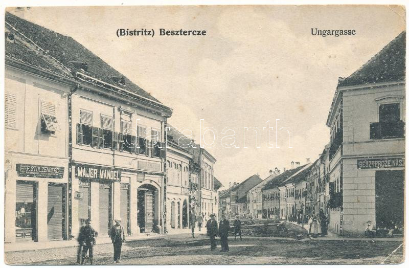 https://www.darabanth.com/en/498-Online-auction/498.0/Postcards/Transylvania~3000006/1908-Beszterce-Bistritz-Bistrita-Magyar-utca-F-Stolzenberg-Majer-Mandel-es-Prikler-Antal-uzl~II3399378