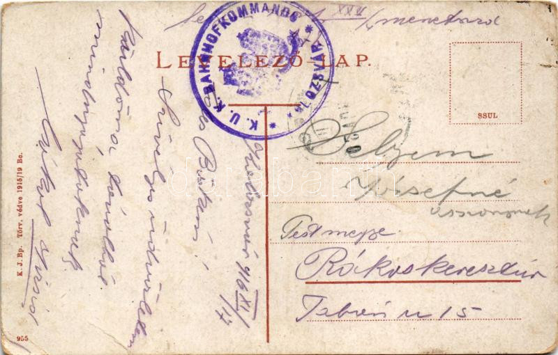 1916 Kolozsvár, Cluj; Botanikus kert / botanical garden + "K.u.K. Bahnhofkommando Kolozsvár" (kopott sarkak / worn corners)