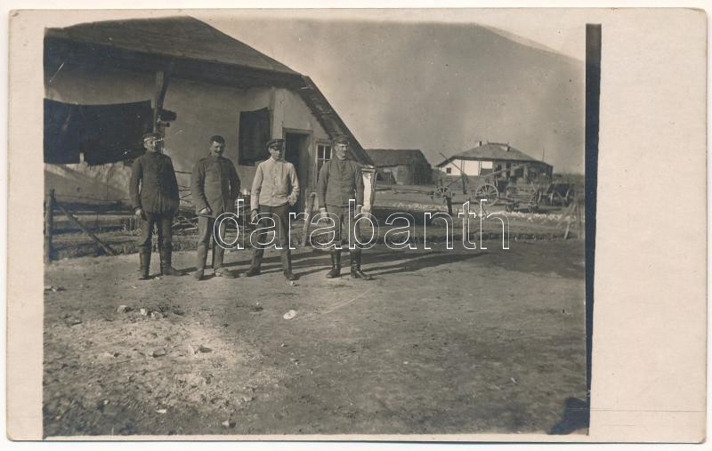 1918 Tataros, Brusturi (Bihar); katonák egy ház előtt, szekerek / sold...