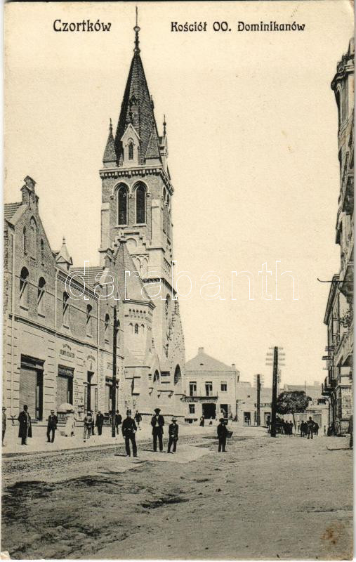 https://www.darabanth.com/en/498-Online-auction/498.0/Postcards/Ukraine~3000127/1914-Chortkiv-Csortkiv-Czortkow-Kosciol-OO-Dominkanow-church-hotel-and-cafe-shops-EK~II3157670