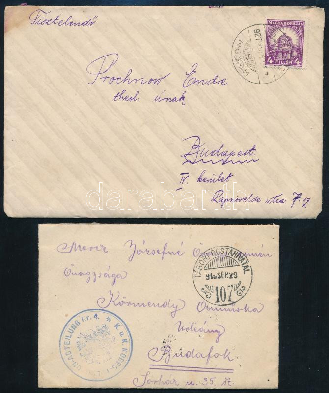 1915-1927 Tábori posta levél + küldemény Pengő-fillér 4 x 4f bérmentes...