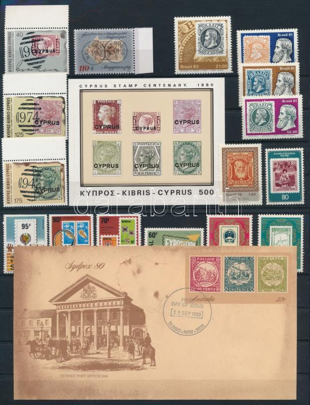 Bélyeg a bélyegen motívum tétel, benne bélyegek, borítékok, 4 stecklap...