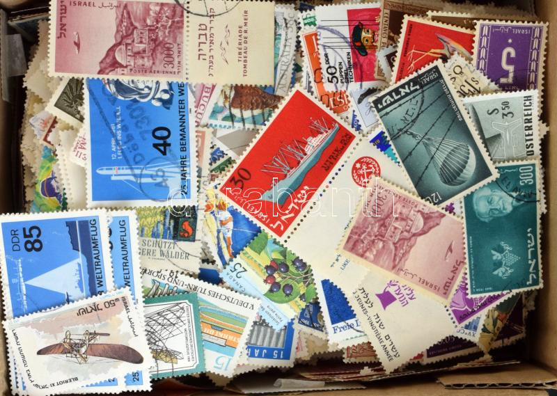 Sok ezer bélyeg, változatos anyag karton dobozban