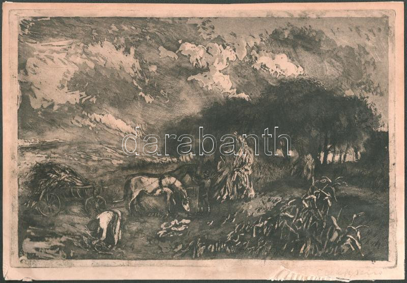Elekfy Jenő (1895-1968): Lovasszekér (betakarítás). Rézkarc, papír, je...