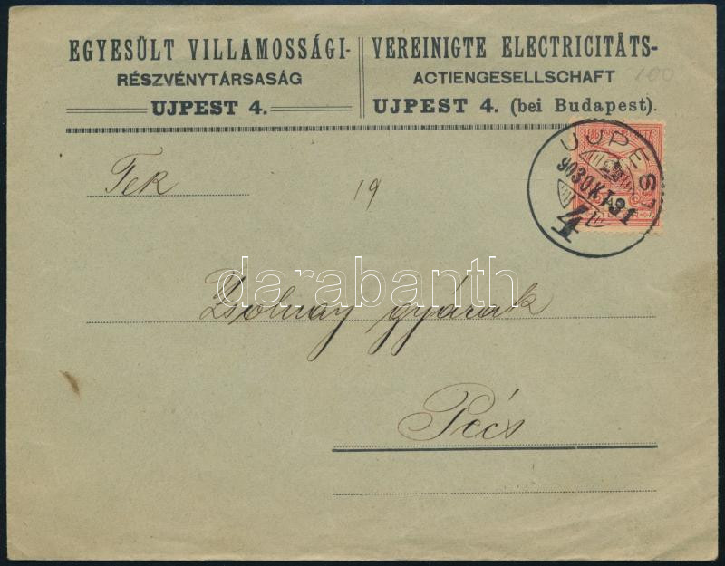 1903 Egyesült Villamossági Rt. boríték Zsolnay Gyárak részére