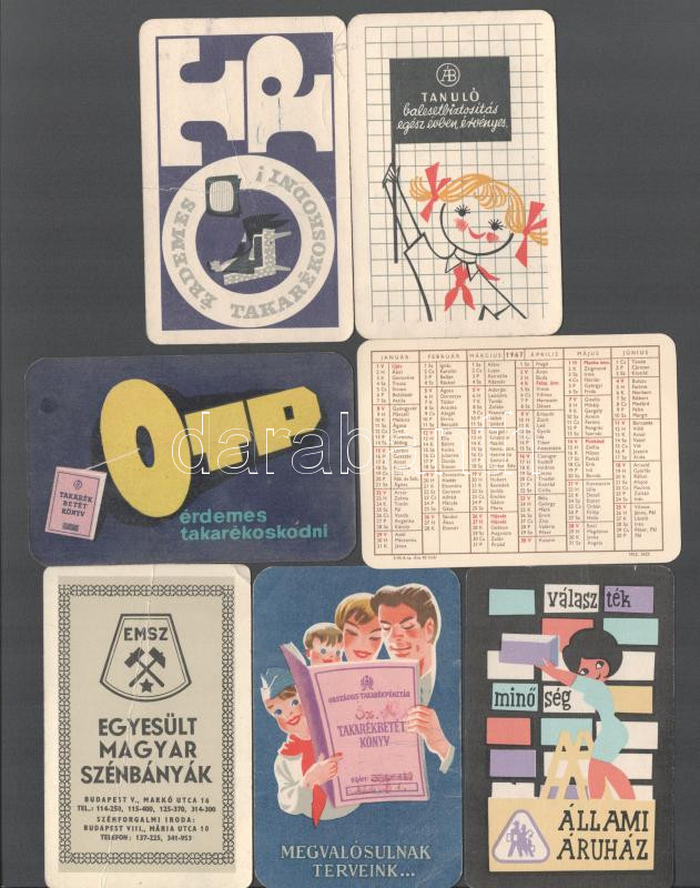 https://www.darabanth.com/en/500-Online-auction/500.0/Art-and-other-collectibles/Advertisement~1000006/1961-1969-Vegyes-kartyanaptar-tetel-7-db~II3404247