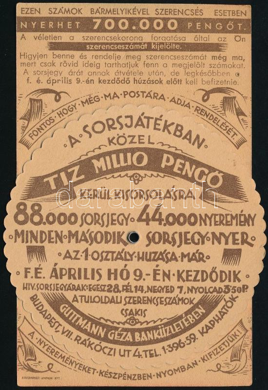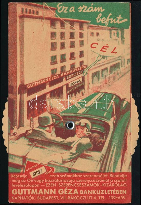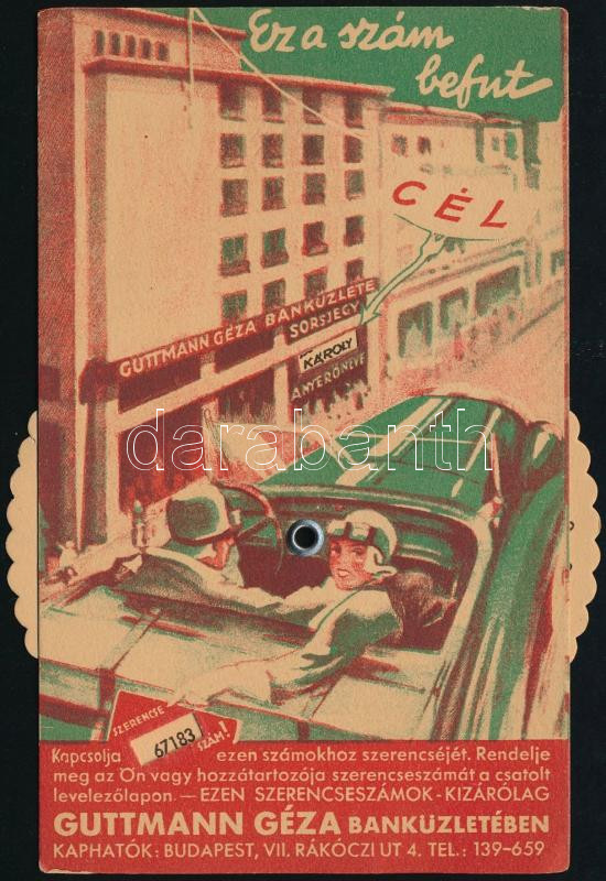 Guttmann Géza Banküzlet szerencsejáték reklámlap, az egyik oldalán szí...