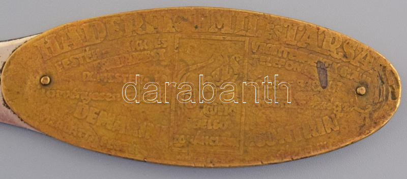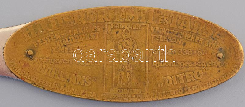 "Haderer Emil és Társa Festék-, Lakk és Vegytermékek Gyára, IX. Mester utca 9.,"Brilliáns"..., "Ditro"...", reklámos levélbontó, h: 25 cm