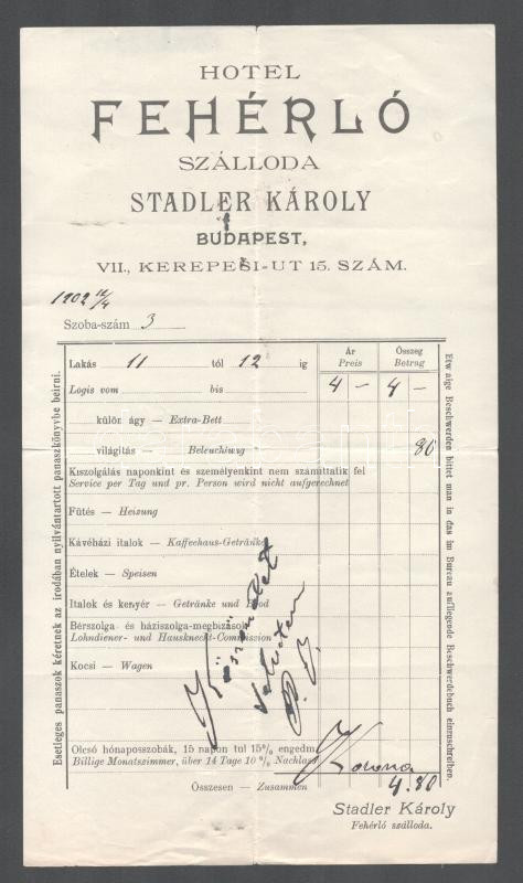 ca 1880 3 db budapesti szálloda fejléces számlája: Erzsébet királyné, Nemzeti szálloda, Fehérló szálloda