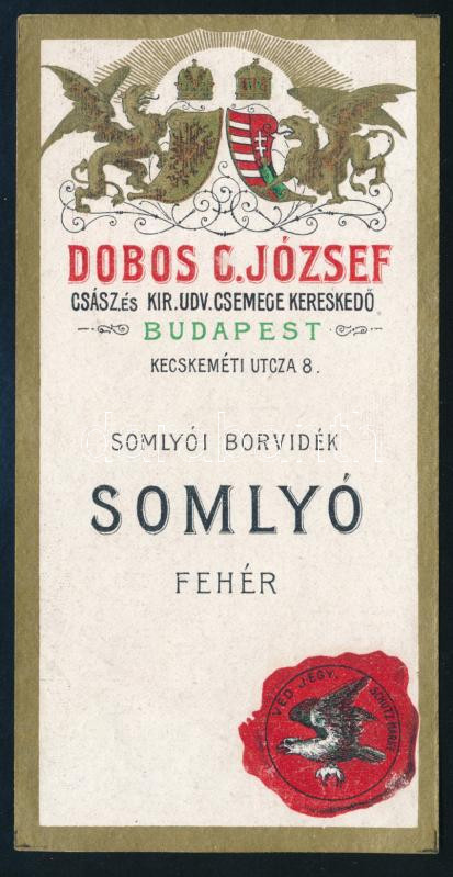 ca 1910 Dobos C. József Somlyó dekoratív fehérbor borcímke. Szép állap...