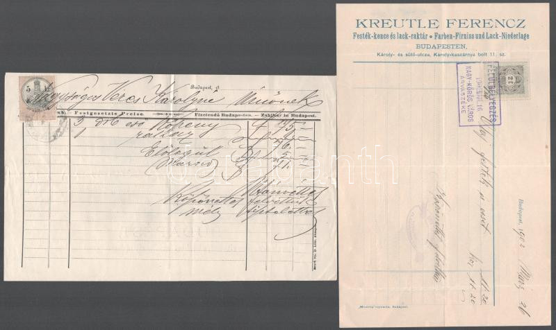 cca 1880-1900 Fejléces számlák gyűjteménye: Koller és Szabó Divatáru, Hugmayer vászon raktár, Kreutle Ferenc lenolaj és festék, Kátai József