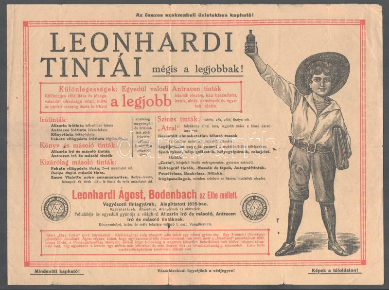 cca 1910 Leonhardi Tintái, reklámprospektus, fekete-fehér illusztráció...