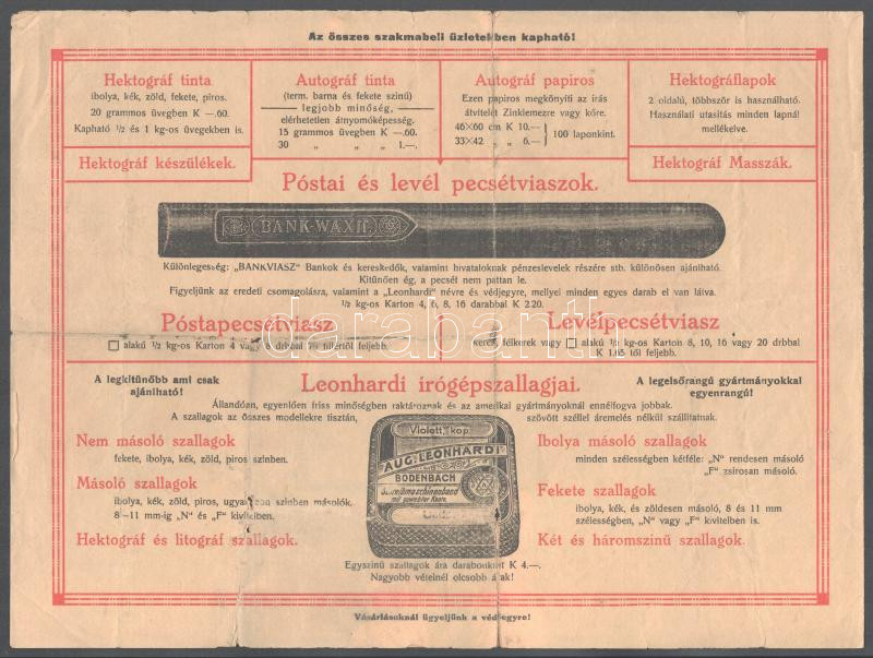 cca 1910 Leonhardi Tintái, reklámprospektus, fekete-fehér illusztrációkkal, szakadásokkal, 2 sztl. lev.