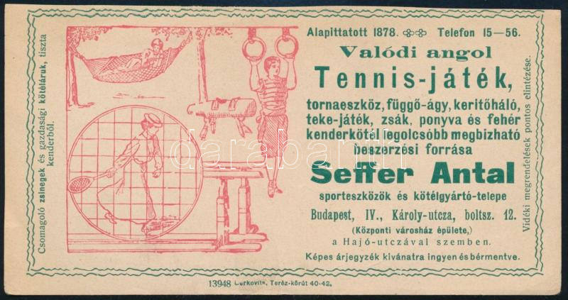 cca 1910 Seffer Antal sporteszközök és kötélgyártó-telepe számolócédul...