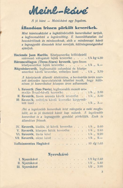 cca 1920-1940 Mein Gyula Rt. Téli árjegyzék. Bp., Bakács, 15+1 p.