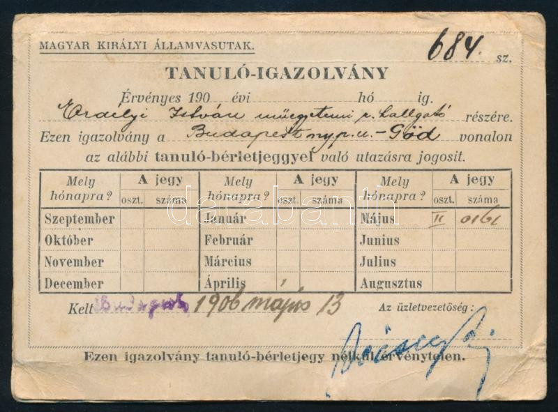 1906 Bp., M. Kir. Államvasutak (MÁV) tanuló-igazolvány Budapest Nyugat... https://www.darabanth.com/en/500-Online-auction/500.0/Art-and-other-collectibles/Documents~1000001/1906-Bp-M-Kir-Allamvasutak-MAV-tanulo-igazolvany-Budapest-Nyugati-pu-God-vonalra-~II3404136