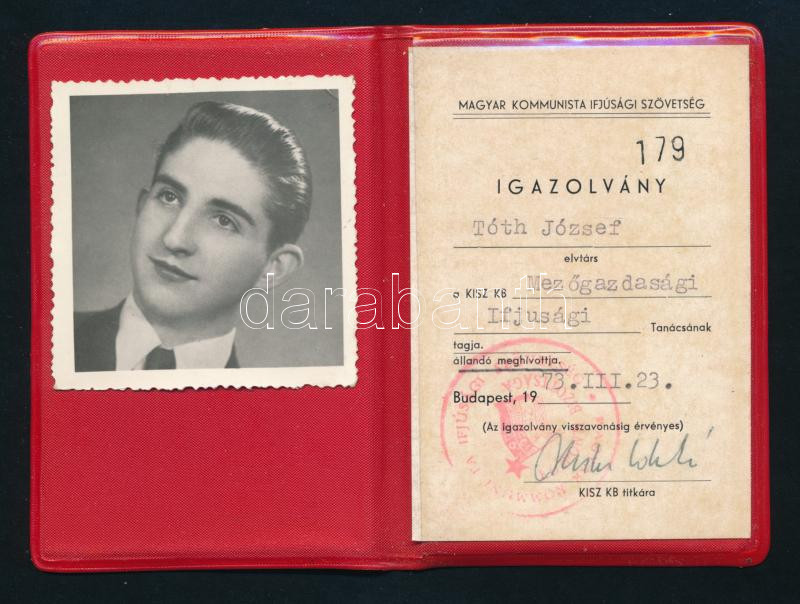 https://www.darabanth.com/en/500-Online-auction/500.0/Art-and-other-collectibles/Documents~1000001/1973-KISZ-KB-Mezogazdasagi-Ifjusagi-Tanacsa-igazolvanya~II3410545