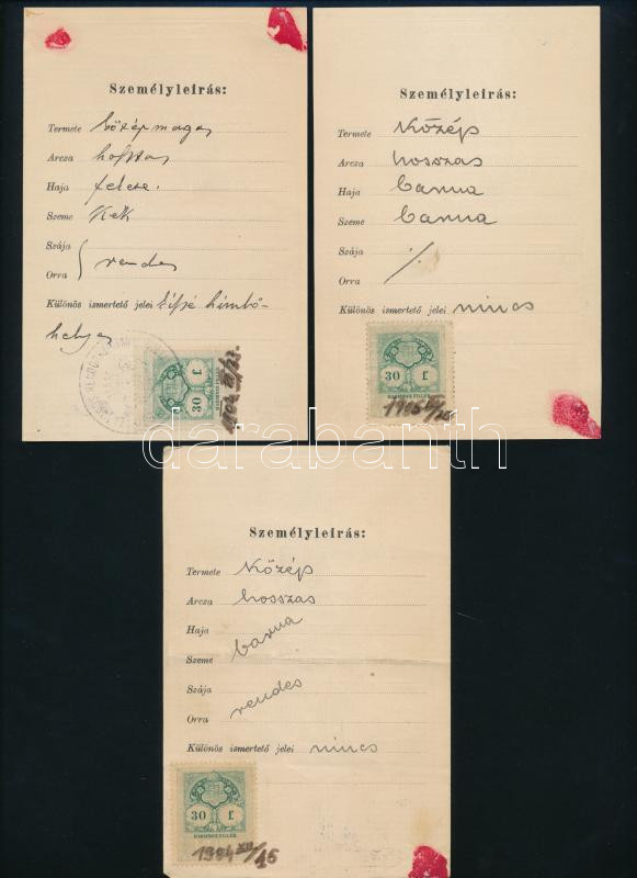 cca 1900 3 db igazolási jegy téglaverők, zenészek részére. Kiskunféleg...