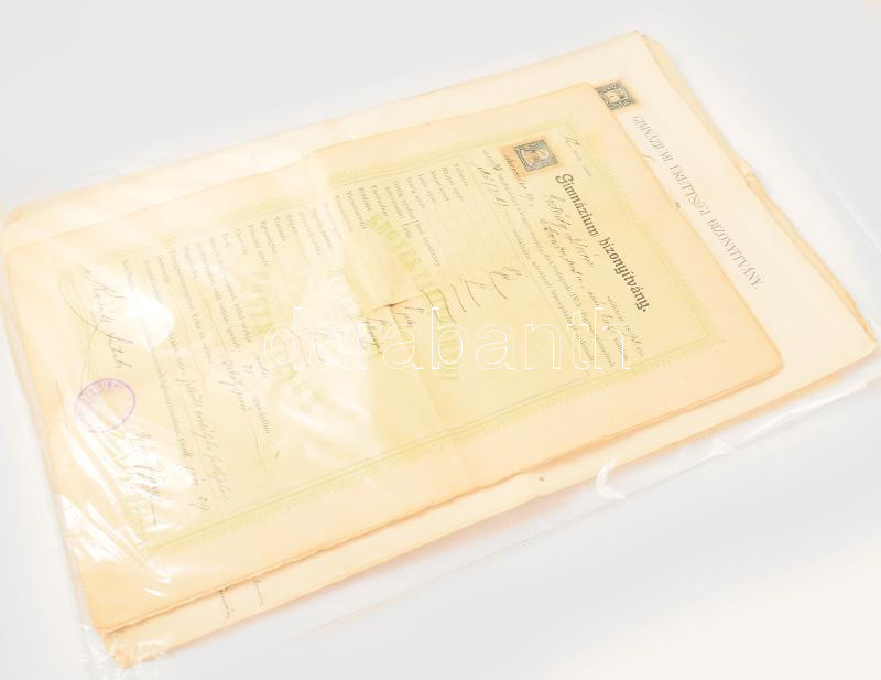 cca 1904-1918 Testvérpár iskolai bizonyítványai, benne az érettségikke...