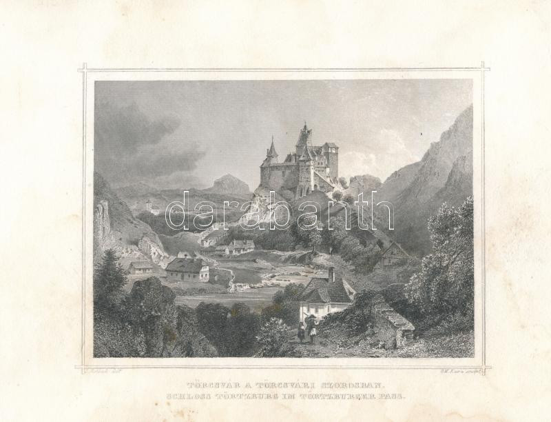 Description: Ludwig Rohbock (1820-1883) - Georg Michael Kurz (1815-1883): Törcsvár a Törcsvári szorosban (Erdély) / Schloss Törtzburg im Törtzburger Pass. Acélmetszet, papír, jelzett a metszeten, kissé foltos, sarkain kissé sérült, 12x16 cm