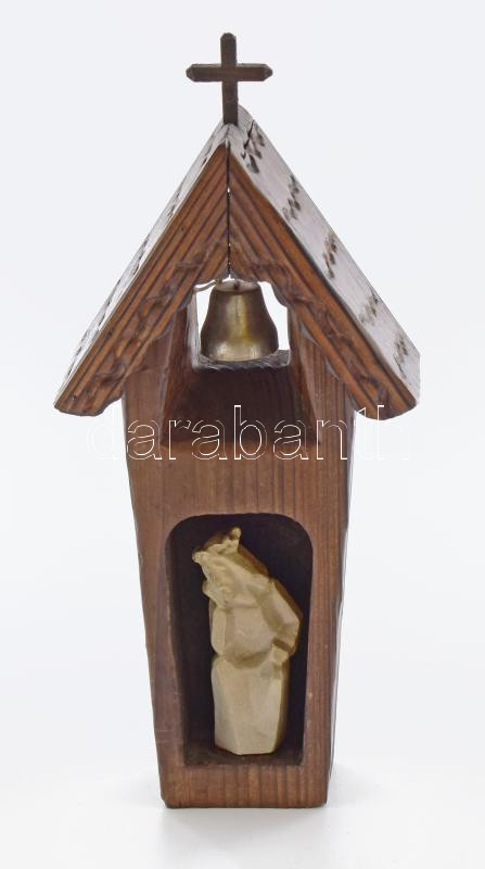 Csengővel és Jézus alakjával asztali fa kegytárgy, m: 27,5 cm