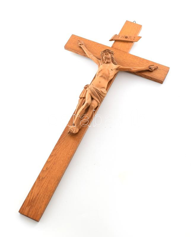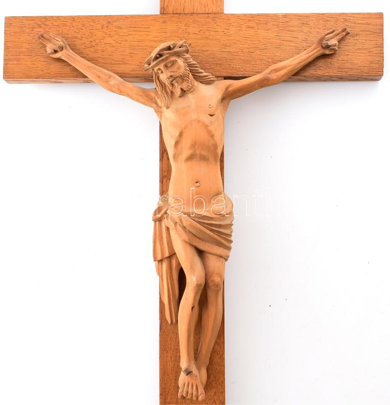 Fali feszület. Ausztria, cca 1940/50, faragott fa, 59x29 cm