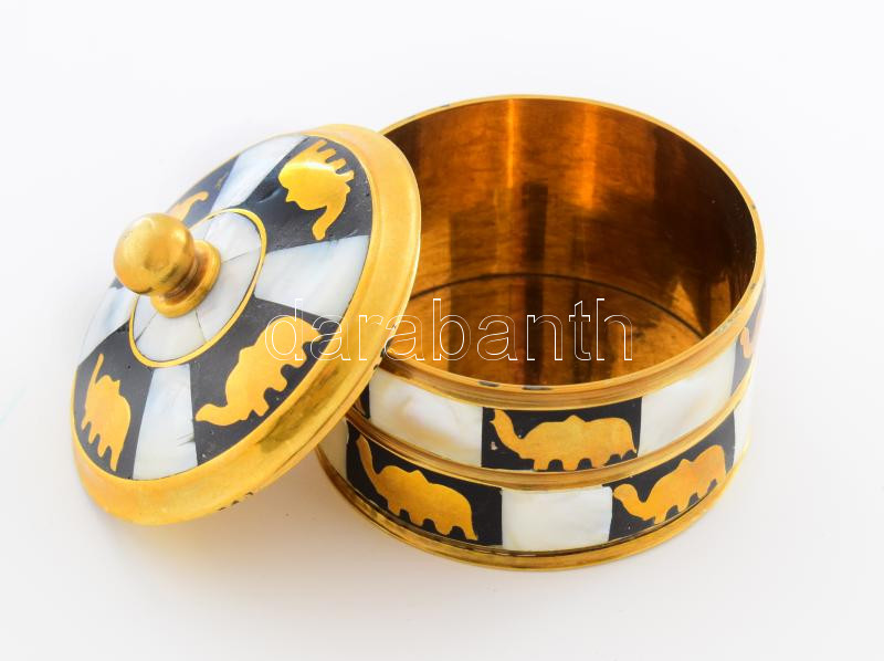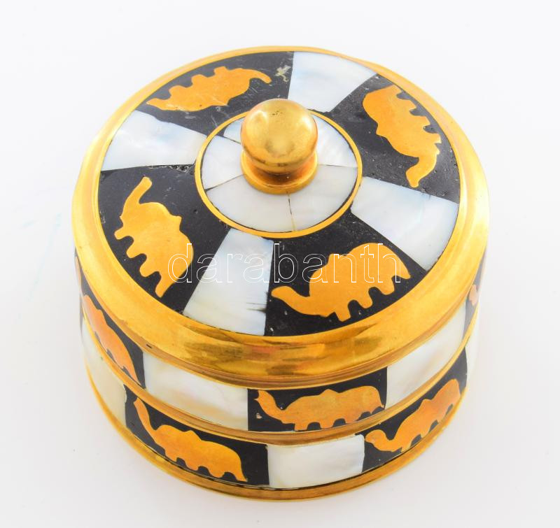 Gyöngyház rárakásos fedeles edény, d: 7 cm