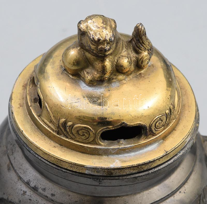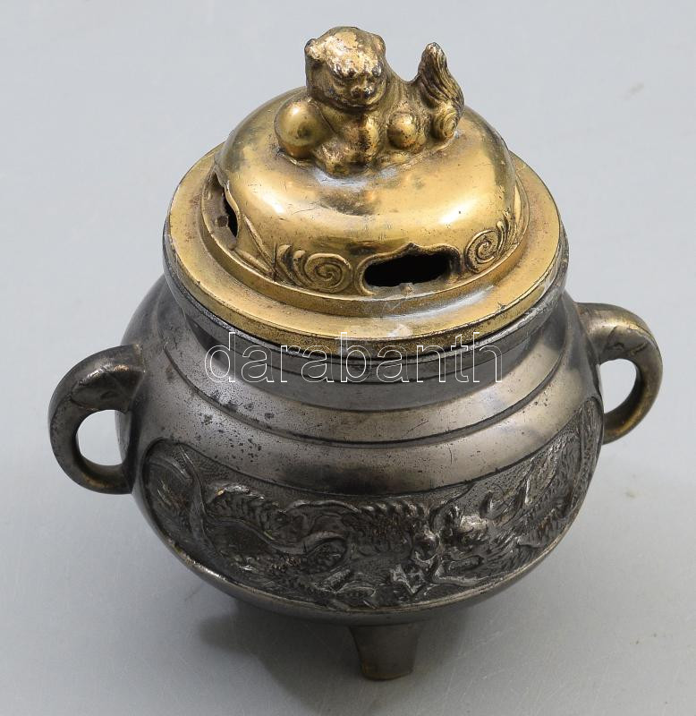 Keleti jelzett ón füstölő, teteje aranyozott, m: 10 cm