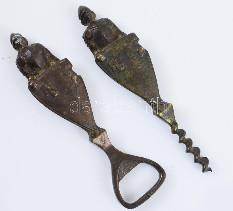 Páncélos figurák dugóhúzó és sörnyitó, bronz, h: 12 cm