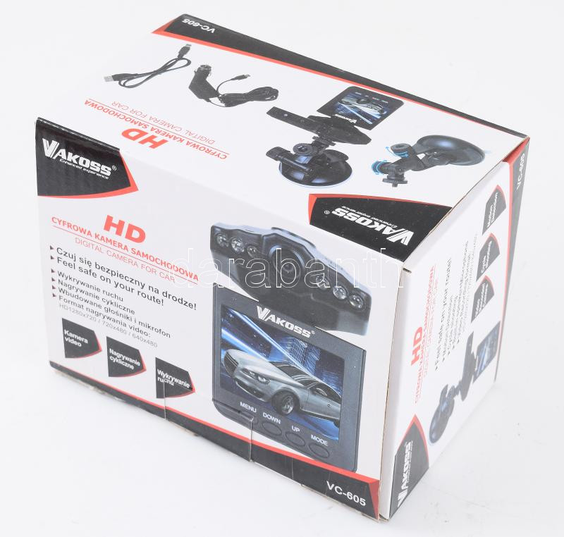 Vakoss autós kamera, tartozékaival, dobozában.
