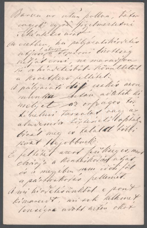 1876 Csabrendek, chernelházi Chernel Olivér (1839-1888) Zala vármegye főszolgabírájának autográf levele 8 beírt oldalon