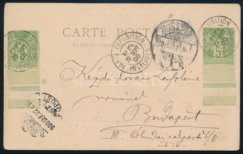 1900 Kézdi-Kovács László (1864-1942) festőművész, műkritikus autográf sora párizsi világkiállításos képeslapon