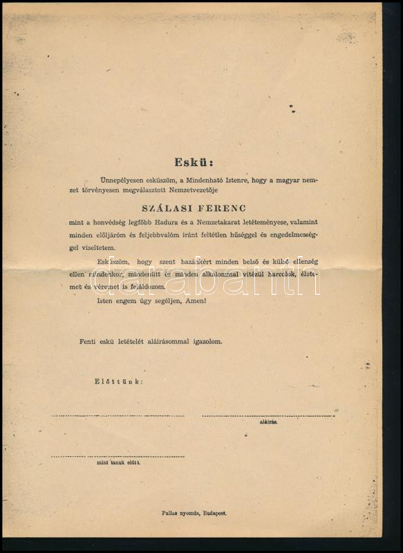 https://www.darabanth.com/en/500-Online-auction/500.0/Art-and-other-collectibles/Historical-documents-manuscripts~1000018/1944-Esku-nyomtatvany-Szalasi-Ferenchez-intezve-kitoltetlen-hajtott~II3409855