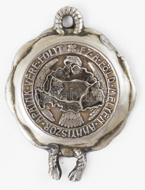 Description: cca 1920-1930 Az Országos Magyar Hadimúzeum Egyesület által kiadott "Nemzeti Ereklye", Nagy-Magyarország vármegyéinek földjéből származó porszemeket tartalmazó "Ércbulla" fém része, felnyitott, 4,5x3,5 cm
