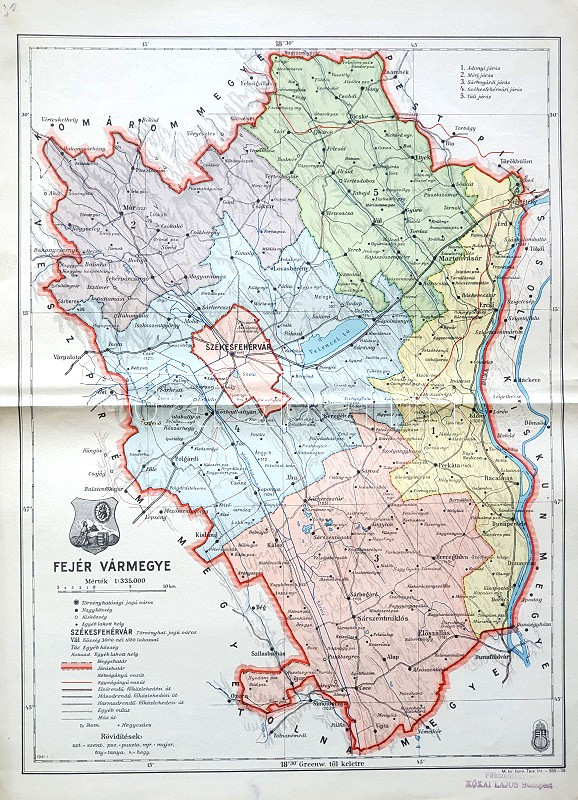[Térkép] Fejér vármegye térképe. Mérték: 1:335,000. (1941).