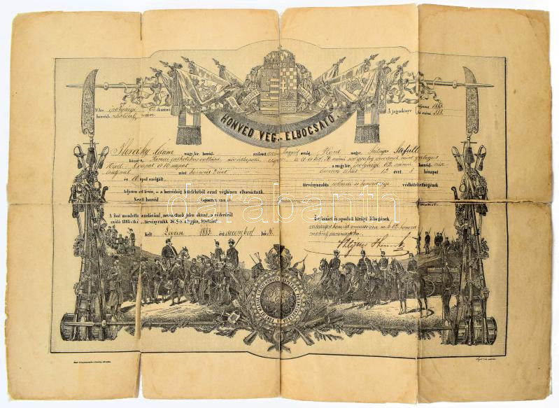 1883 Léva, Díszes honvéd végelbocsátó (obsit) a cs. és kir. 26 sz. gya... https://www.darabanth.com/en/500-Online-auction/500.0/Art-and-other-collectibles/Military~1000011/1883-Leva-Diszes-honved-vegelbocsato-obsit-a-cs-es-kir-26-sz-gyalogezred-gyalogos-honvedja~II3410735