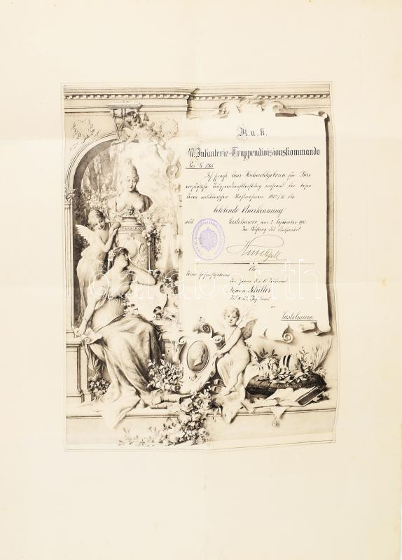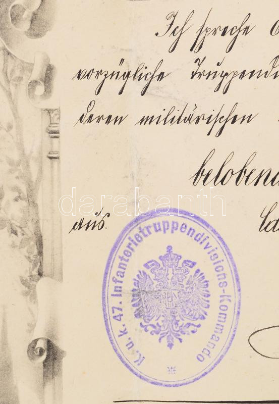 1913 Castelnuovo, K. u. k. 47. Infanterie-Truppendivisionskommando dic... https://www.darabanth.com/en/500-Online-auction/500.0/Art-and-other-collectibles/Military~1000011/1913-Castelnuovo-K-u-k-47-Infanterie-Truppendivisionskommando-dicsero-oklevele-Schiller-Janos~II3403254