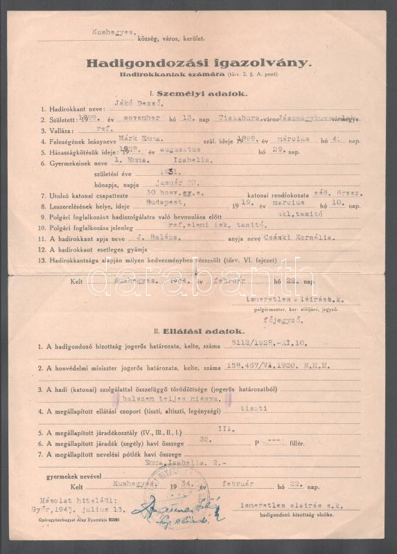 https://www.darabanth.com/en/500-Online-auction/500.0/Art-and-other-collectibles/Military~1000011/1934-Kunhegyes-hadigondozasi-igazolvany-hadirokkant-reszere~II3409847