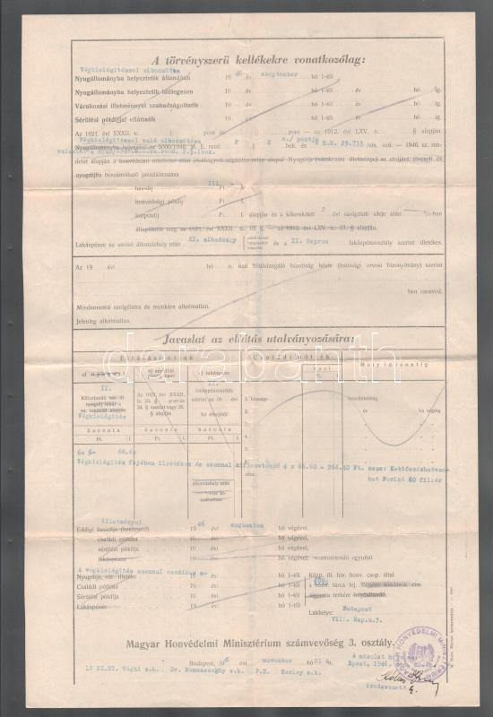 1944-1946 Nagy János ht. alhadnagy/alezredes részére kiállított 5 db hivatalos irat, közte elbocsájtásával kapcsolatos iratok
